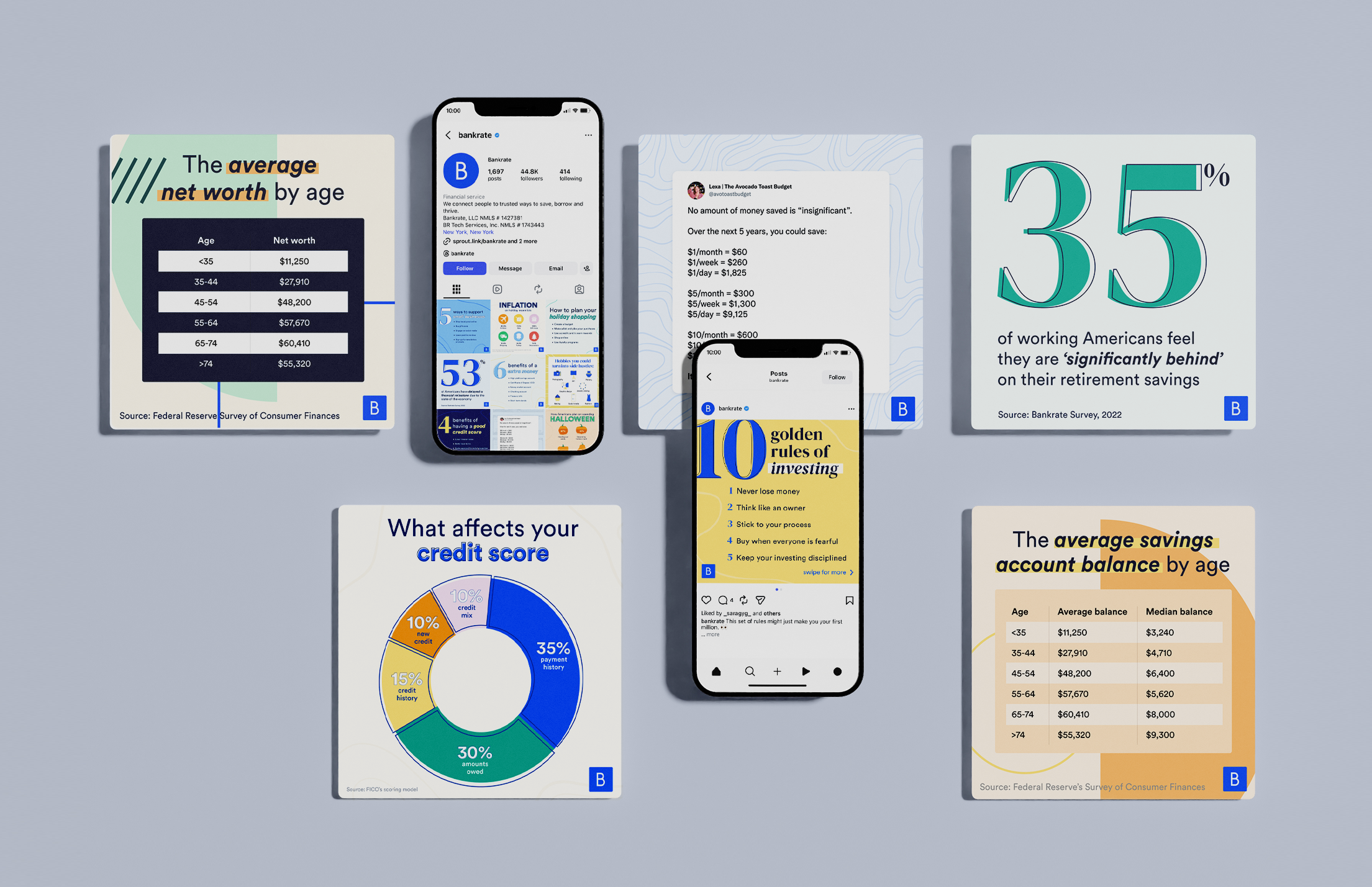 Bankrate’s organic social needed a cohesive look and a repeatable system. I built a scalable template framework covering infographic, statistic, and data-driven content that brought consistency across the board.